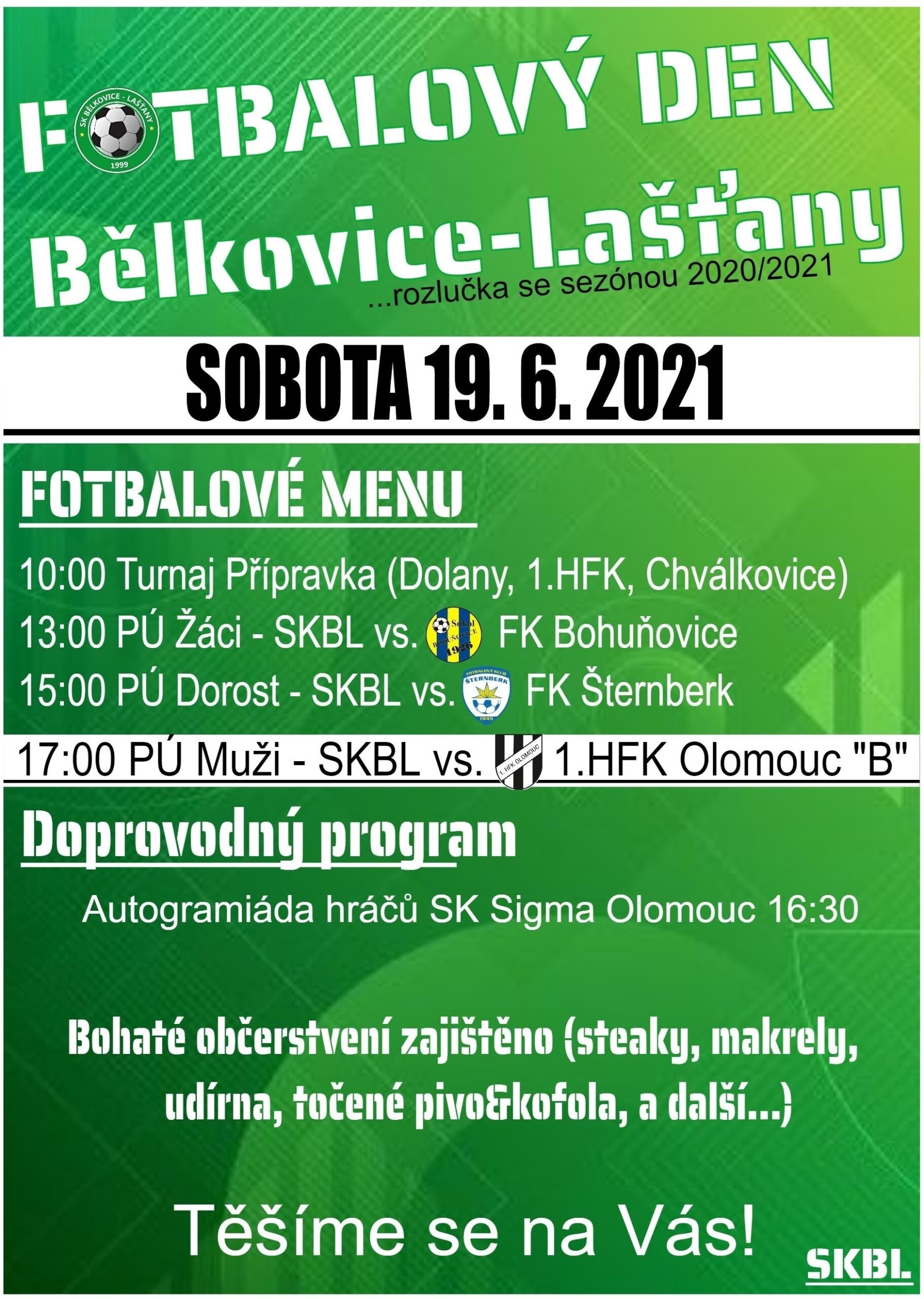 Neděle 23.5. 17:00 – FC Dolany vs. SK Bělkovice-Lašťany Pátek 4.6. 18:00 – SK Bělkovice-Lašťany vs. FK Šternberk “B” Sobota 19.6. 17:00 – SK Bělkovice-Lašťany…